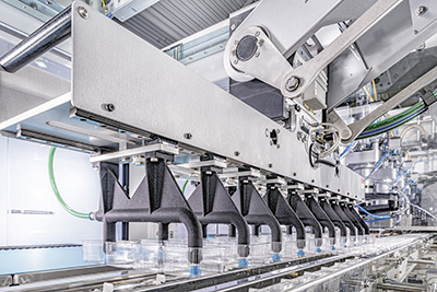 Insgesamt acht F4-Arme ermöglichen im Doppelpick-Verfahren eine besonders schnelle und flexible Verarbeitung von Schlauchbeutel- und Tray-Produkten.