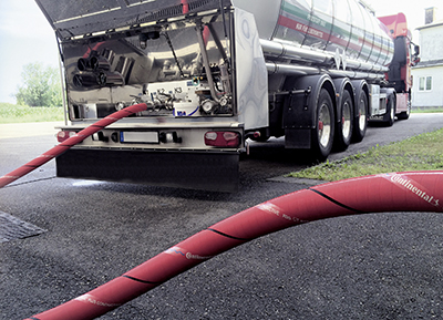 Beim Ankuppeln der Schlauchleitung kann ein Funke entstehen, der ein explosionsfähiges Alkohol/Luft-Gemisch zum Zünden bringt. Um diese gefährliche Situation zu vermeiden, muss die auf der inneren Schlauchoberfläche entstandene elektrische Ladung sicher durch die Schlauchwand abgeleitet werden können. Foto: Continental
